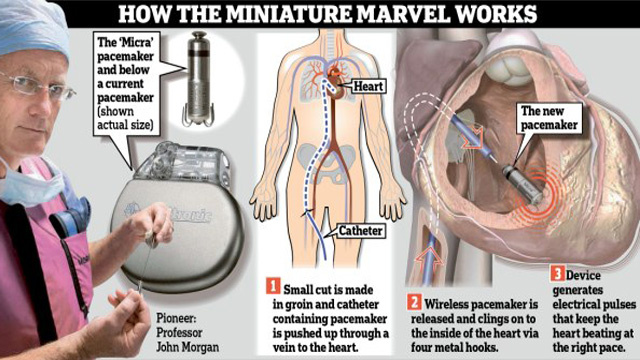نجح أطباء في زراعة جهاز لاسلكي بحجم حبة دواء صغيرة داخل قلب مريض بريطاني لأول مرة في العالم لتنظيم ضربات قلبه، ووُصفت العملية الجراحية بأنها "حدث تاريخي" يمكن أن تُحدث ثورة في علاج مشكلات القلب، وتُنهي مخاطر أجهزة تنظيم نبضات القلب السلكية التقليدية، والجهاز من تصنيع الشركة الأمريكية "ميدترونيك".