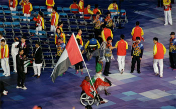 وقال مع إن "ما أنجزه المعاقون وتميزهم في المحافل الدولية جاء بفضل الدعم المستمر من القيادة الرشيدة لذوي الإعاقة بالدولة وتوفير كافة احتياجاتهم من تعليم وتأهيل وتوظيف وممارسة الأنشطة الرياضية من خلال مختلف مؤسسات الرعاية والتأهيل والأندية الرياضية الست المنتشرة في الدولة وهي أندية أبوظبي والعين ودبي والثقة وخورفكان وعجمان للمعاقين والتي يلتحق بها المئات من الرياضيين المعاقين من الجنسين ومن مختلف التصنيفات الطبية للإعاقة ويمارسون فيها العديد من الرياضات الخاصة بالمعاقين والمعتمدة دوليا .