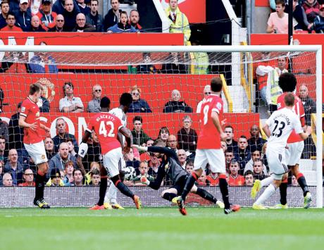 وافتتح التسجيل لصالح فريق مانشستر يونايتد التسجيل عبر لاعب وسطه الكوري الجنوبي سونغ-يونغ كي الذي هز شباك الحارس الإسباني دافيد دي خيا بتسديدة صاروخية من خارج المنطقة في الدقيقة 28.