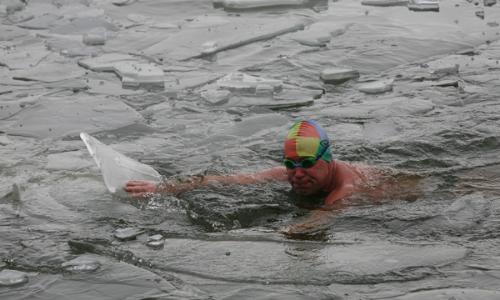 عشاق السباحة الشتوية في مدينة تومين غرب سيبيريا 40 ساعة في الماء البارد، وذلك في